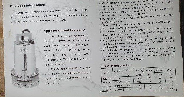24-voltes -135w max--10 metros --max--130 litros minuto - Preço: sob consulta